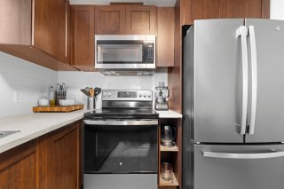 d'une cuisine fonctionnelle à aire ouverte, et d'un balcon
